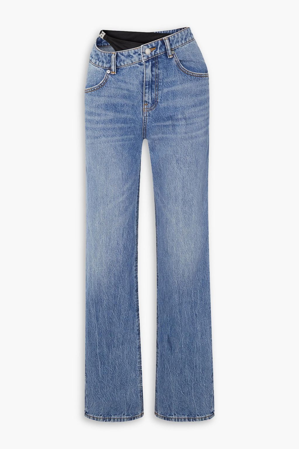 ALEXANDER WANG بنطال جينز واسع الساقين بخصر عالٍ وقصة غير متماثلة مزين بالكريستال