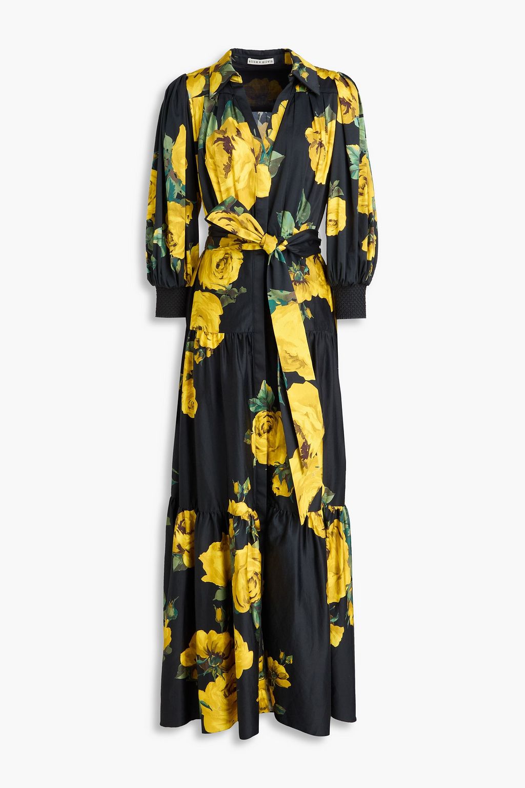 ALICE + OLIVIA فستان طويل بأسلوب القميص "كورا" من مزيج القطن بطبقات متدرجة ,بطبعة الأزهار