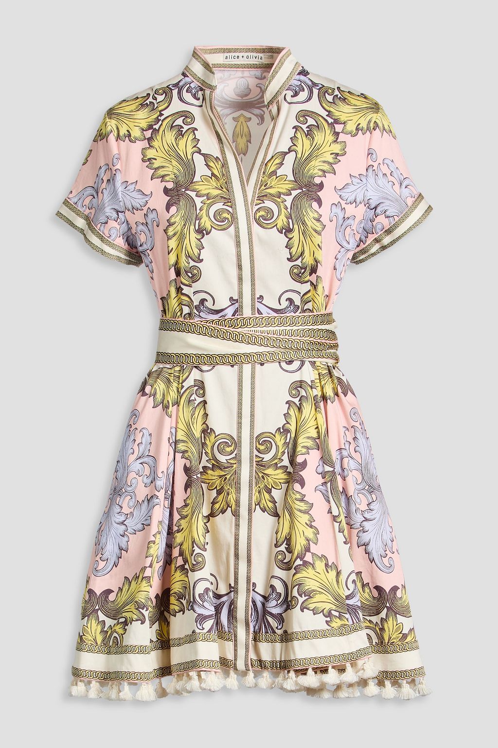 ALICE + OLIVIA فستان قصير "لوسي" بأسلوب القميص من القطن المطاطي مزين بطبعات