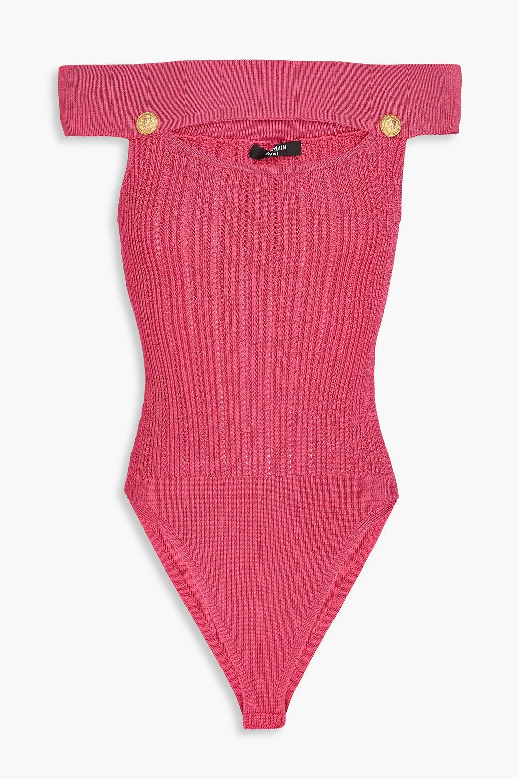 BALMAIN بودي سوت من نسيج بحبكة بوانتيل بفتحات وتصميم مزركش