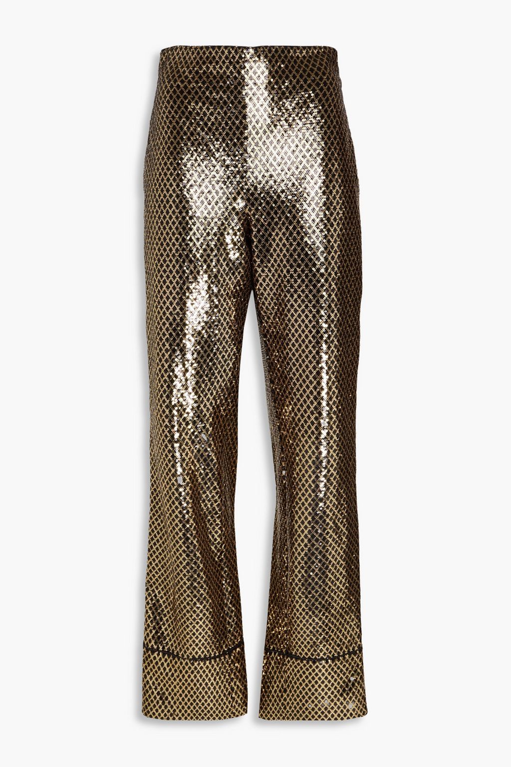 BORGO DE NOR بنطال"هافانا" من التول بأرجل مستقيمة مزين بأقراص برّاقة