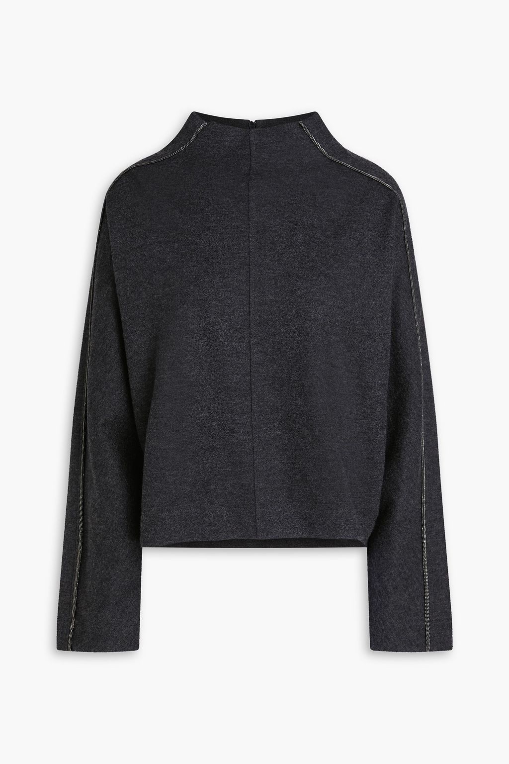 BRUNELLO CUCINELLI كنزة رياضية بياقة مرتفعة مصنوعة من مزيج الكشمير مزينة بالخرز
