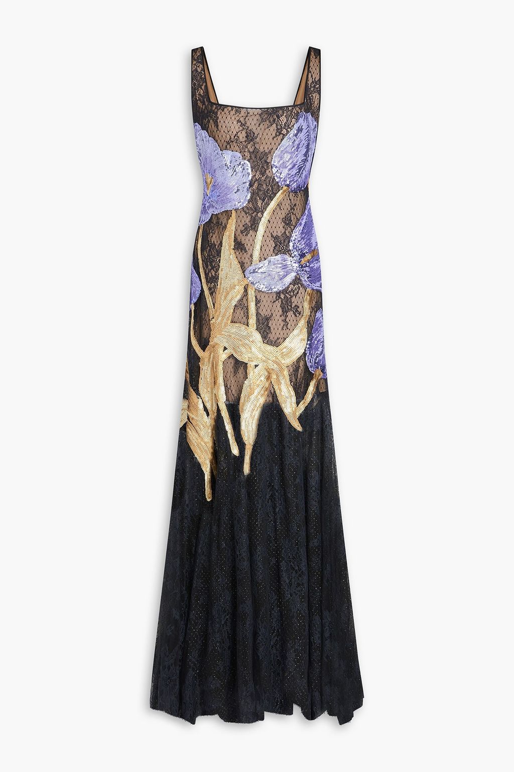 COSTARELLOS فستان سهرة من الدانتيل مزين بالغليتر وبأقراص برّاقة