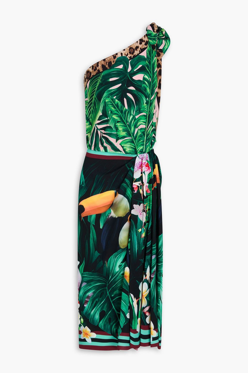 DOLCE&GABBANA فستان متوسط الطول من الكريب الحريري بطبعات وبتصميم منسدل ومكشوف الكتف