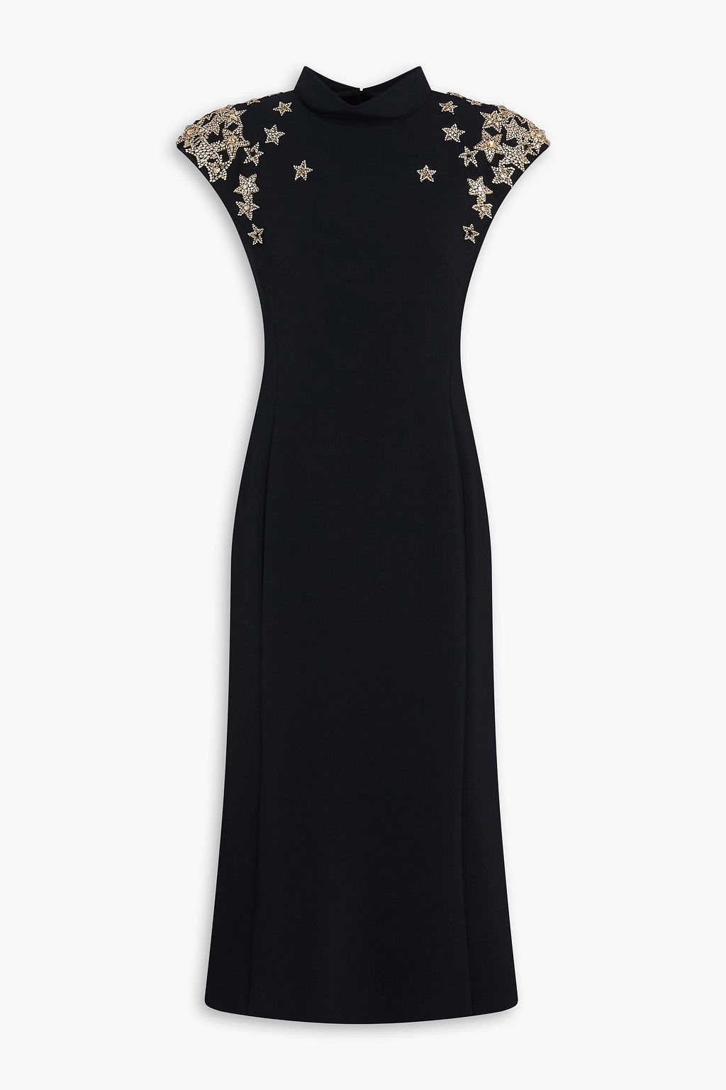 JENNY PACKHAM فستان متوسط الطول من الكريب بحواف واسعة وتصميم مطرّز