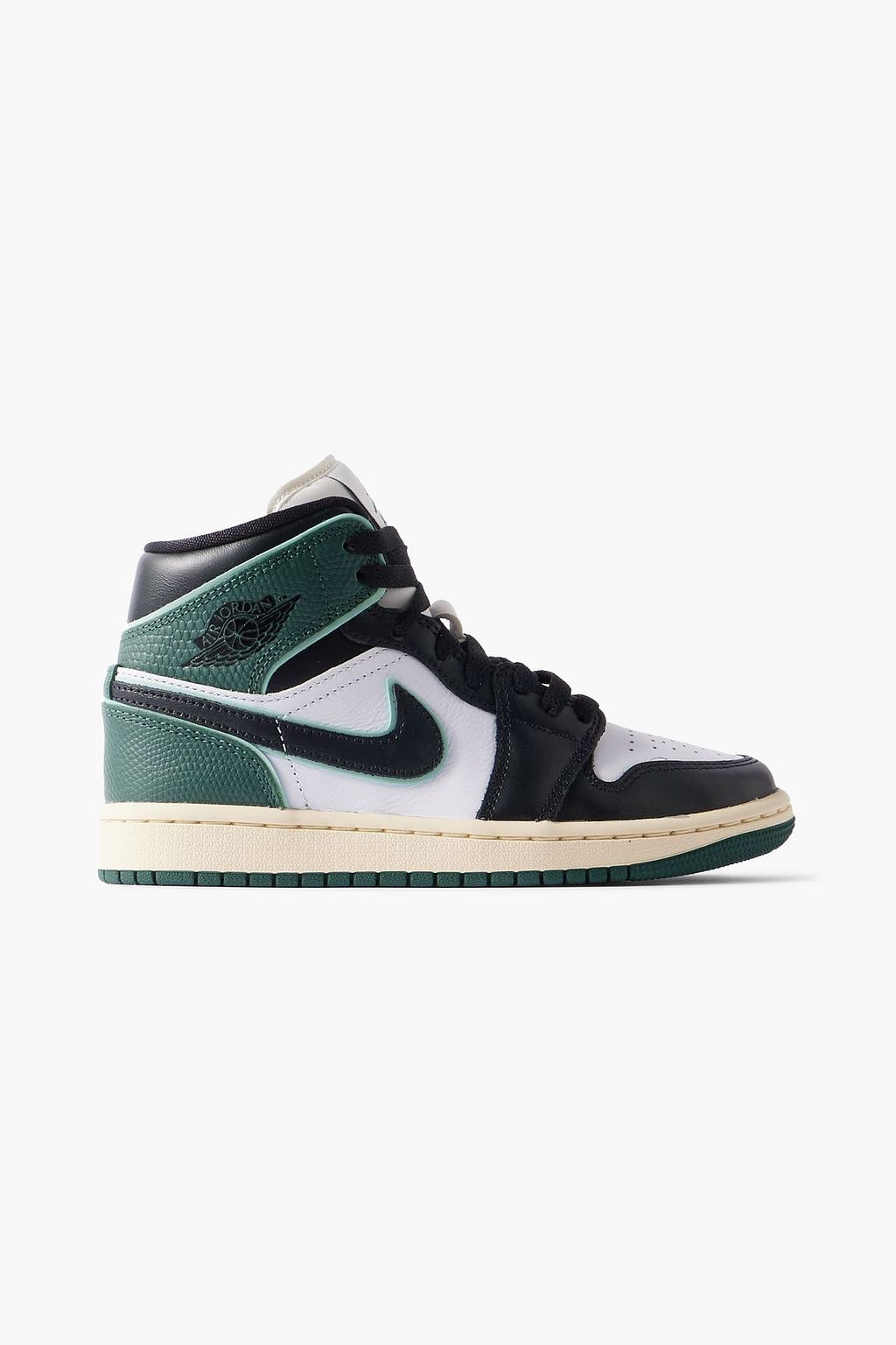 JORDAN حذاء سنيكرز "أير جوردن 1 ميد إس إي" برقبة عالية من الجلد الأملس بنمط جلد العظاءة