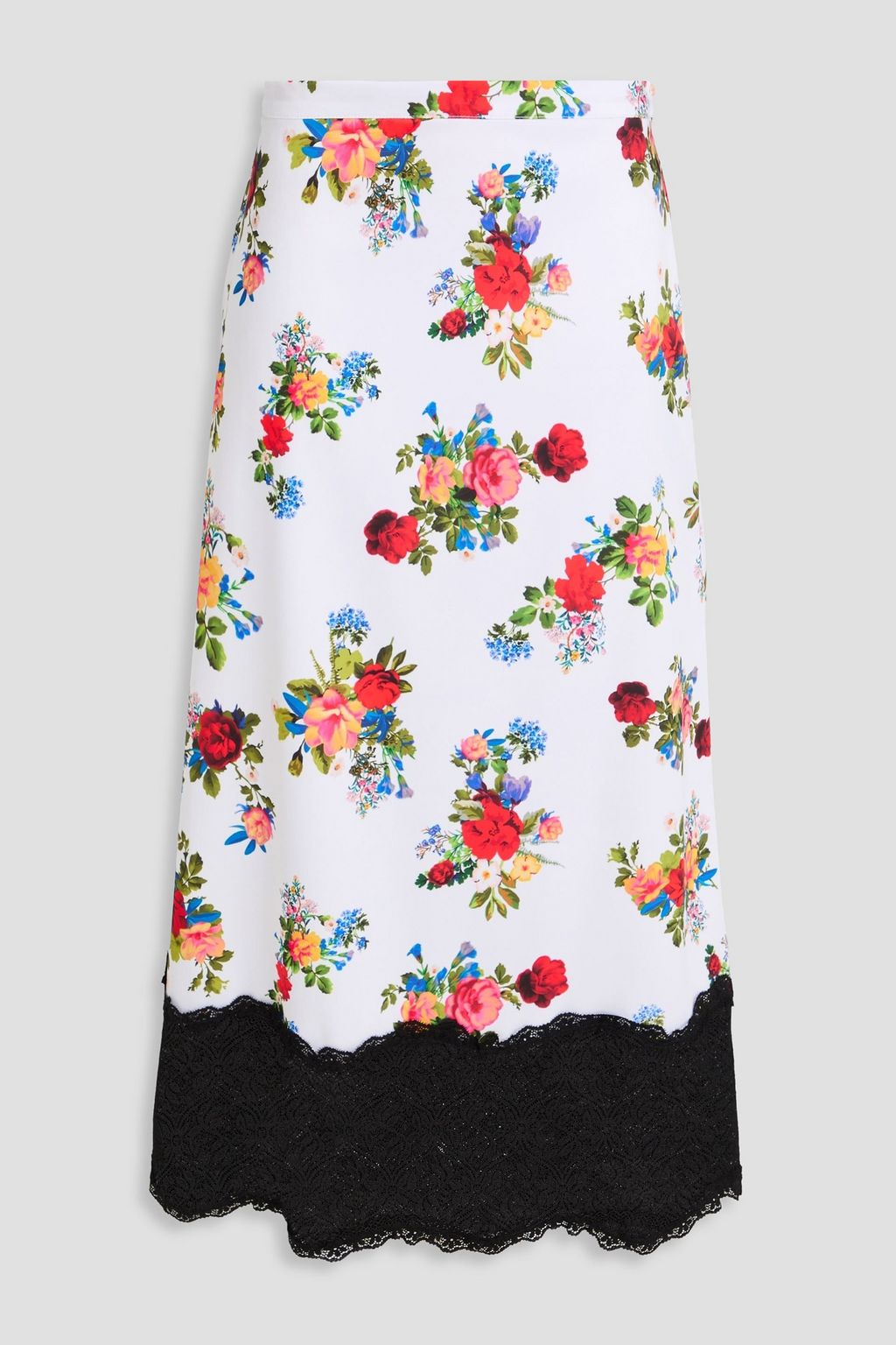 KIKA VARGAS تنورة شوندا متوسطة الطول من الساتان بحواف من الدانتيل بطبعة الأزهار