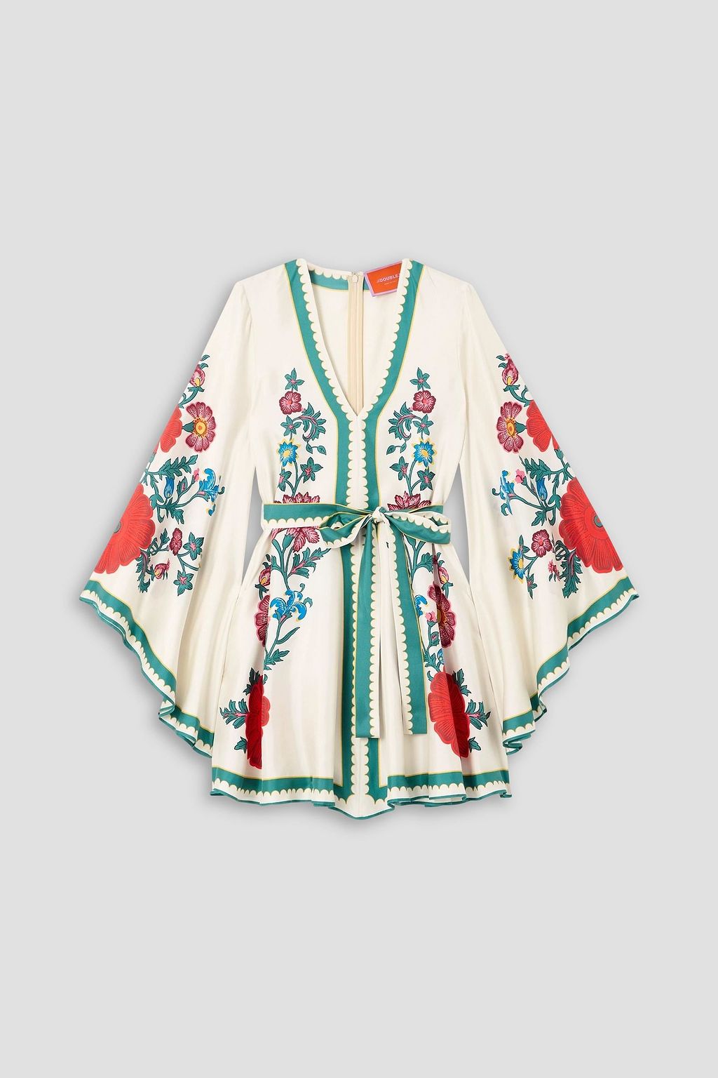 • LA DOUBLEJ فستان + أورليبار براون ماجنيفيكو قصير من حرير تويل بحزام وبطبعة الأزهار