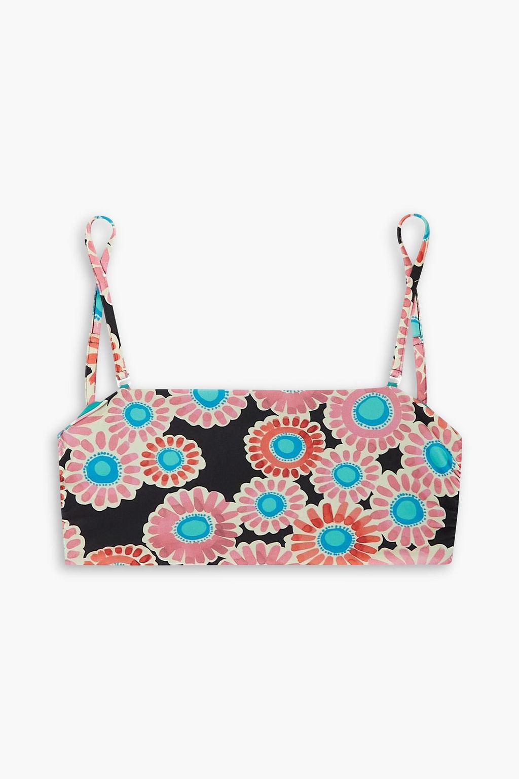 LA DOUBLEJ توب بكيني بتصميم باندو مطرز ومزين بطبعة الأزهار برباط خلفي يمكن ارتداؤه على الوجهين