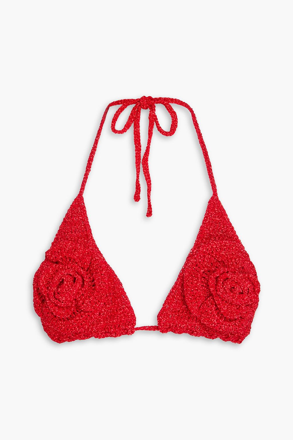 MAGDA BUTRYM توب بيكيني مثلث الشكل من الكروشيه مُزيّن بزخارف الأزهار