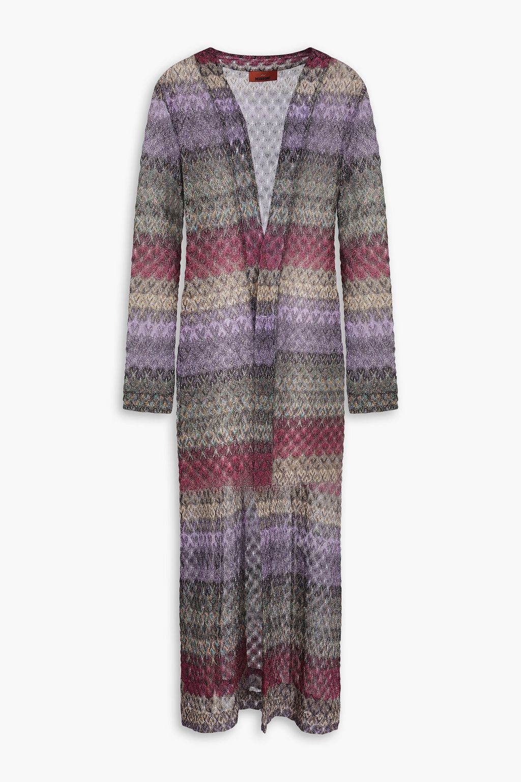 MISSONI كارديغان من نسيج بحبكة كروشيه بتصميم مخطط وبلون معدني