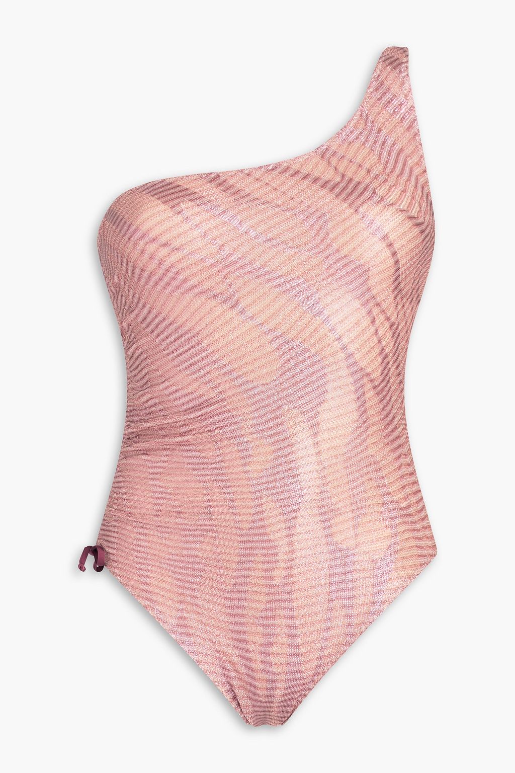 MISSONI لباس سباحة بكتف واحدة بحبكة كروشيه بلون ميتاليك
