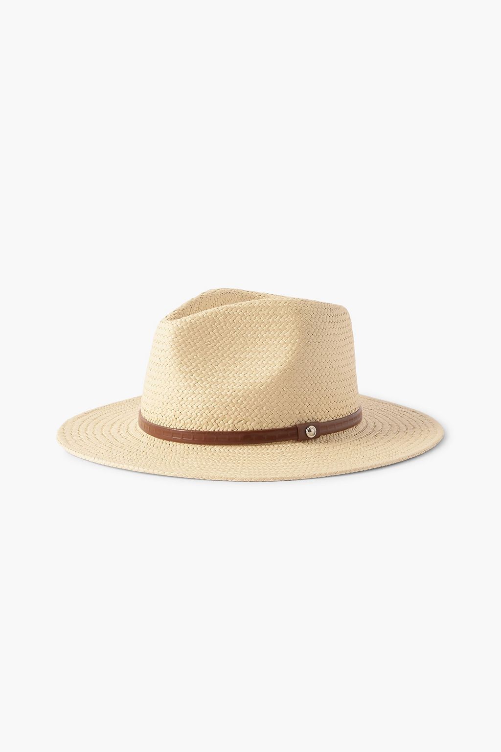 حُبكت قبعة فيدورا هذه بتوقيع rag & bone من القش بحافة ناعمة توفّر القدر اللازم فقط من الظل لحماية وجهك من أشعة الشمس. وهي تمتاز بربطة من الجلد لتثبت في مكانها إنْ هبّ نسيم على حين غرة.