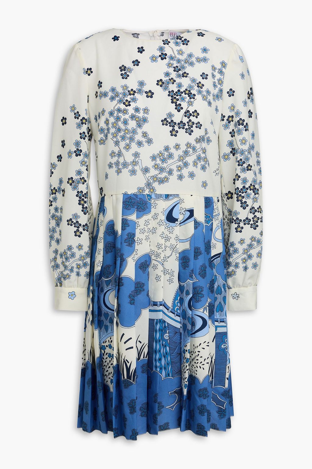 REDVALENTINO فستان مصنوع من الحرير الصيني ومزين بكسرات وبطبعات