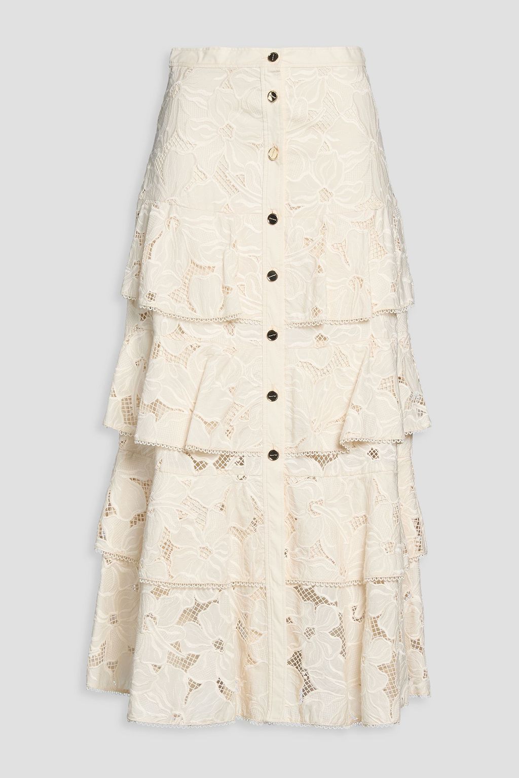 SANDRO تنورة متوسطة الطول بطبقات متدرجة من الدانتيل