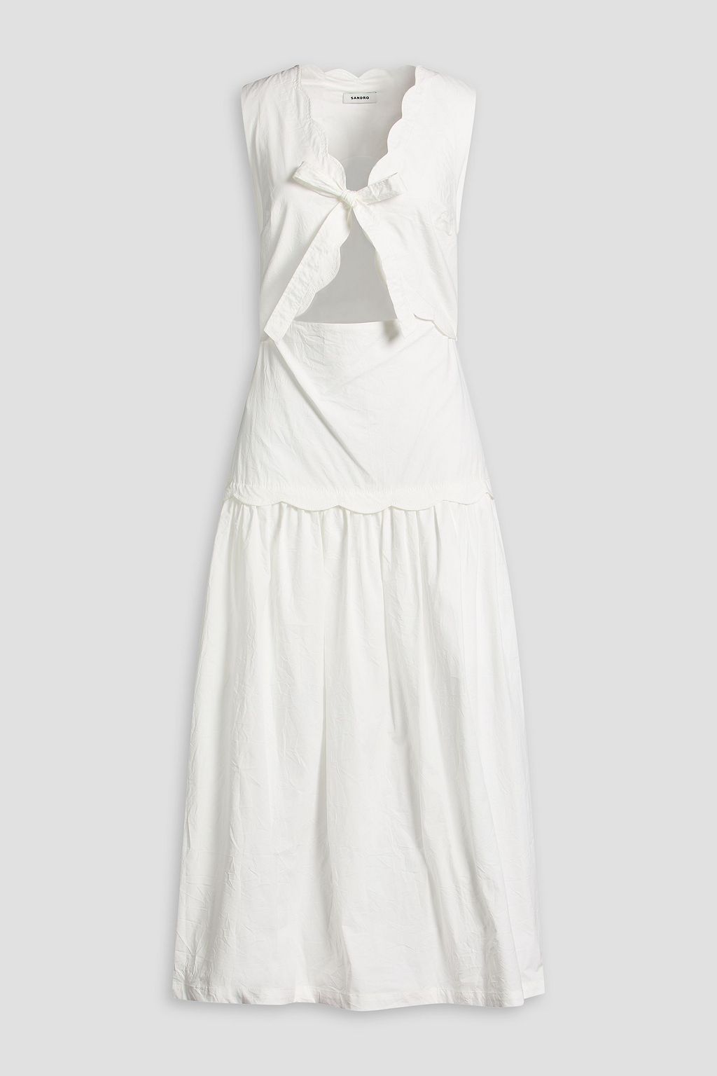 SANDRO فستان متوسط الطول من قطن بوبلين مطاطي مزين بفتحات وبربطة على شكل فراشة