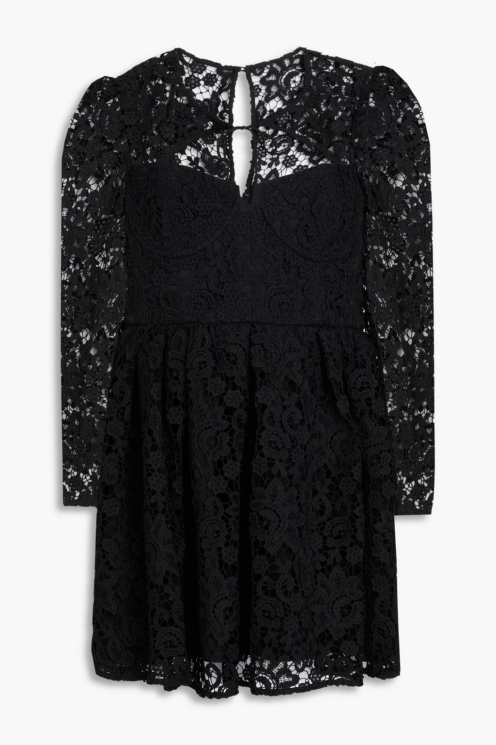 SELF-PORTRAIT فستان قصير من الدانتيل المفرّغ بربطة من الأمام ومزين بأجزاء مقصوصة