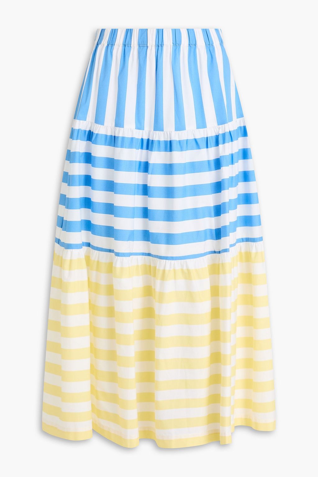 STAUD تنورة متوسطة الطول "إيدالينو" بطبقات متدرجة من البوبلين المصنوع من مزيج من القطن بتصميم مخطط