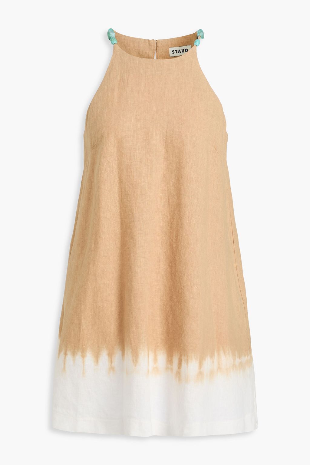 STAUD فستان قصير "كابو" من الكتان مزين بزخارف ومصبوغ بطريقة الربط