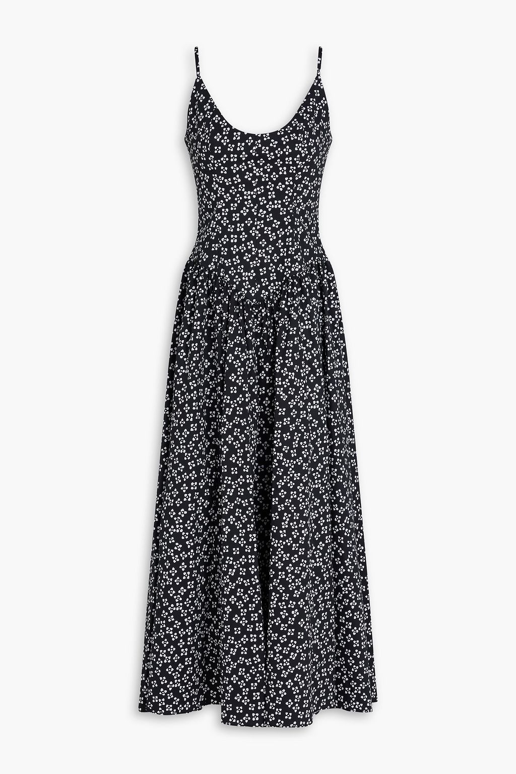 STAUD فستان متوسط الطول "دينا" من قطن بوبلين مطاطي مزيّن بالورود