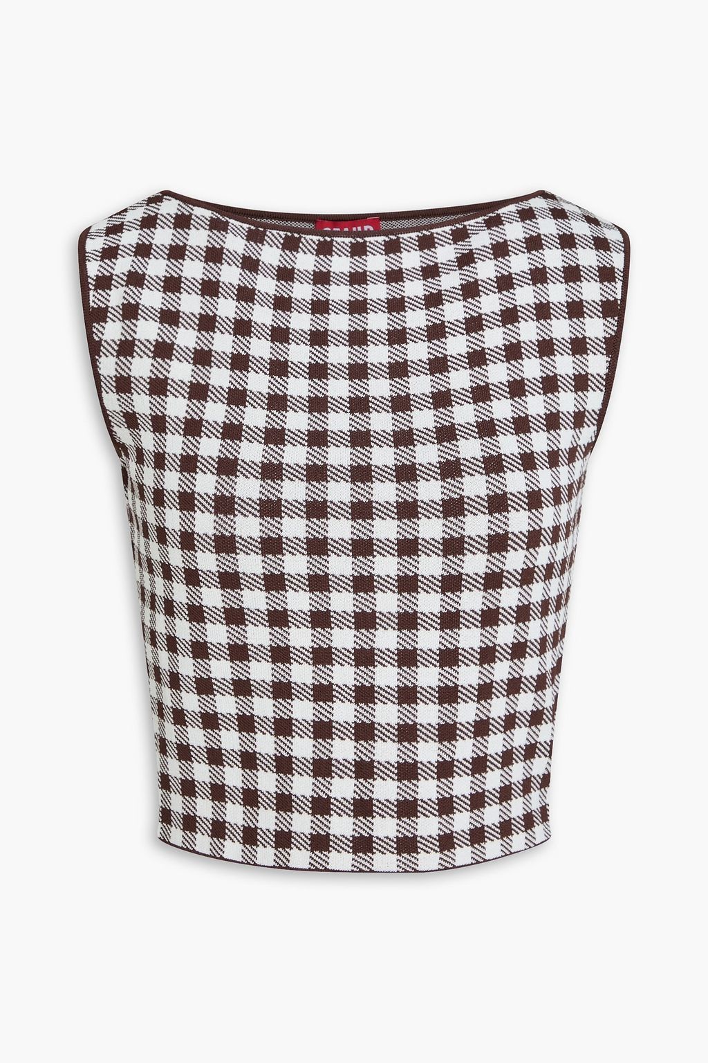 STAUD بلوزة "مونتجومري" قصيرة من نسيج بحبكة الجاكار بنقشة مربعات