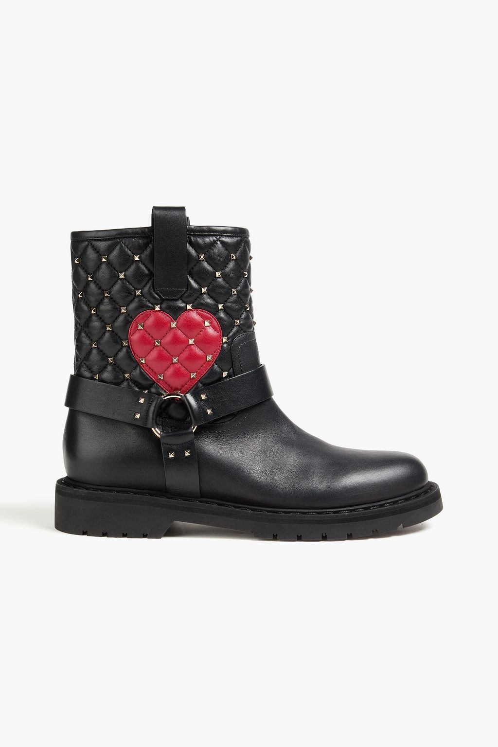 VALENTINO GARAVANI حذاء بوت بطول الكاحل من الجلد بتصميم مبطن مزين بقطع معدنية
