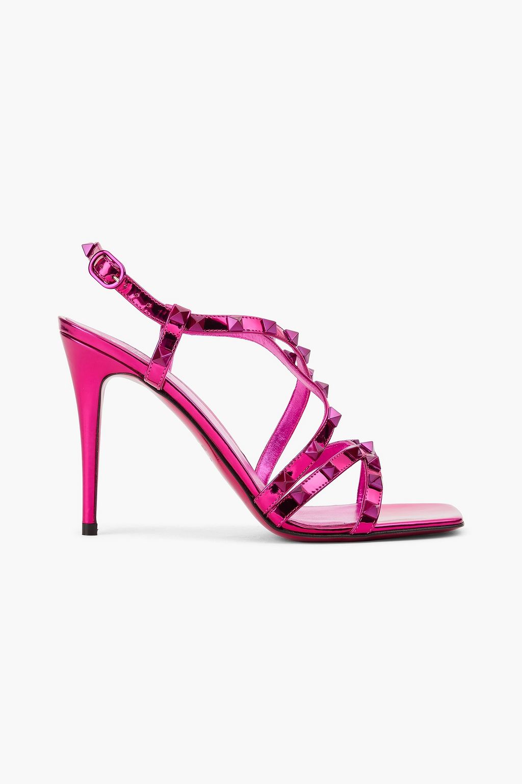 VALENTINO GARAVANI صندل من الجلد اللامع بلمعة معدنية مزيّن بدبابيس معدنية