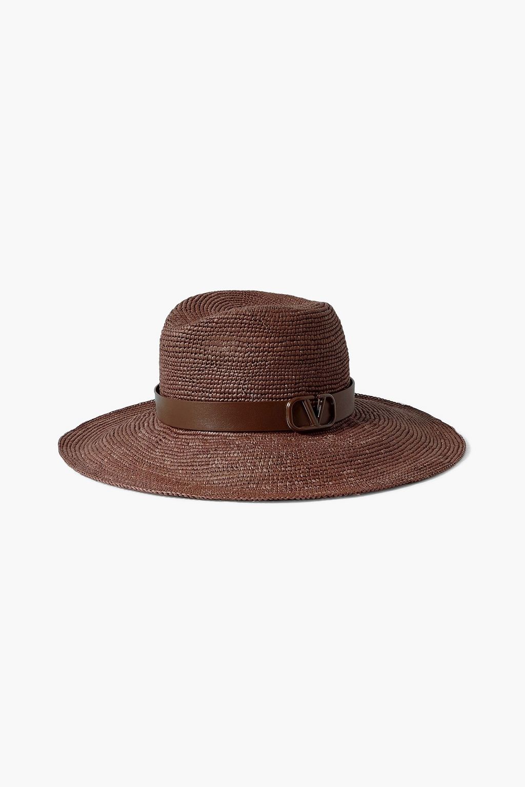 VALENTINO GARAVANI قبعة فيدورا VLOGO بتأثير القش وحواف من الجلد