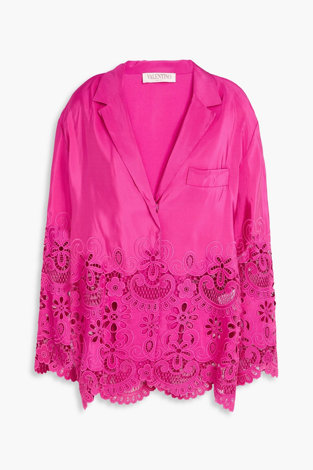 VALENTINO GARAVANI قميص من الحرير والتفتا بقِطع محاكة بجانب بعضها البعض من دانتيل غيبور