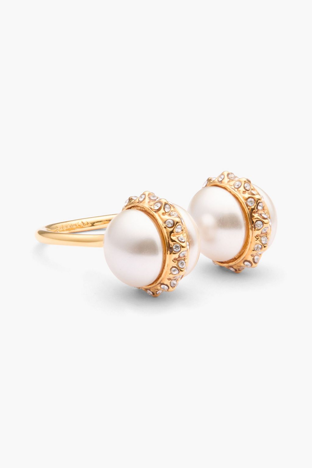 VALENTINO GARAVANI خاتم من اللؤلؤ الصناعي والكريستال مطلي بالذهب عيار 18 قيراط