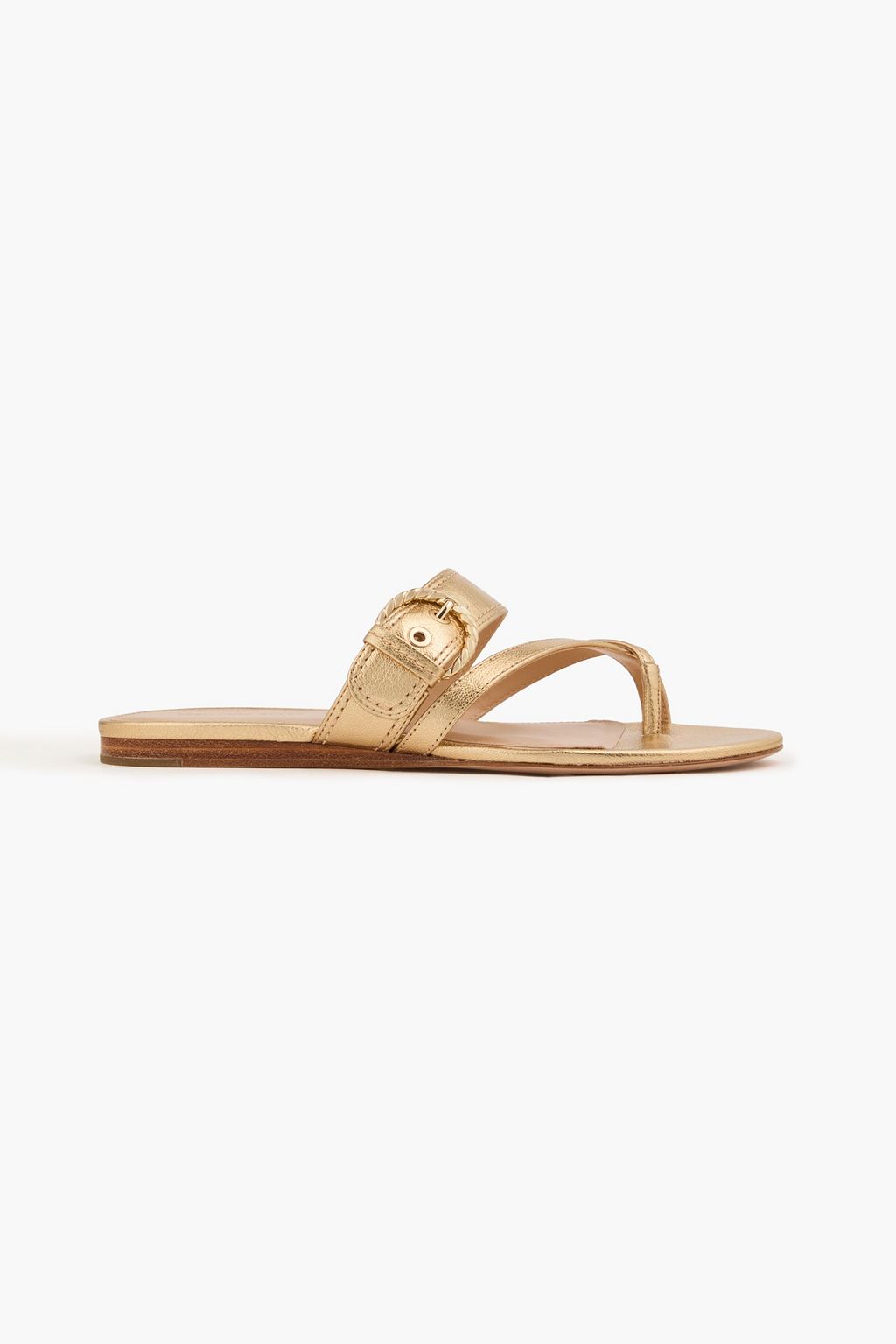 VERONICA BEARD صندل "سالفا" من الجلد بلون معدني ومزود بإبزيم