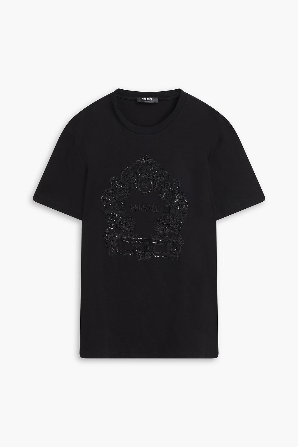 VERSACE تي شيرت من قطن جيرسي بتصميم مزركش