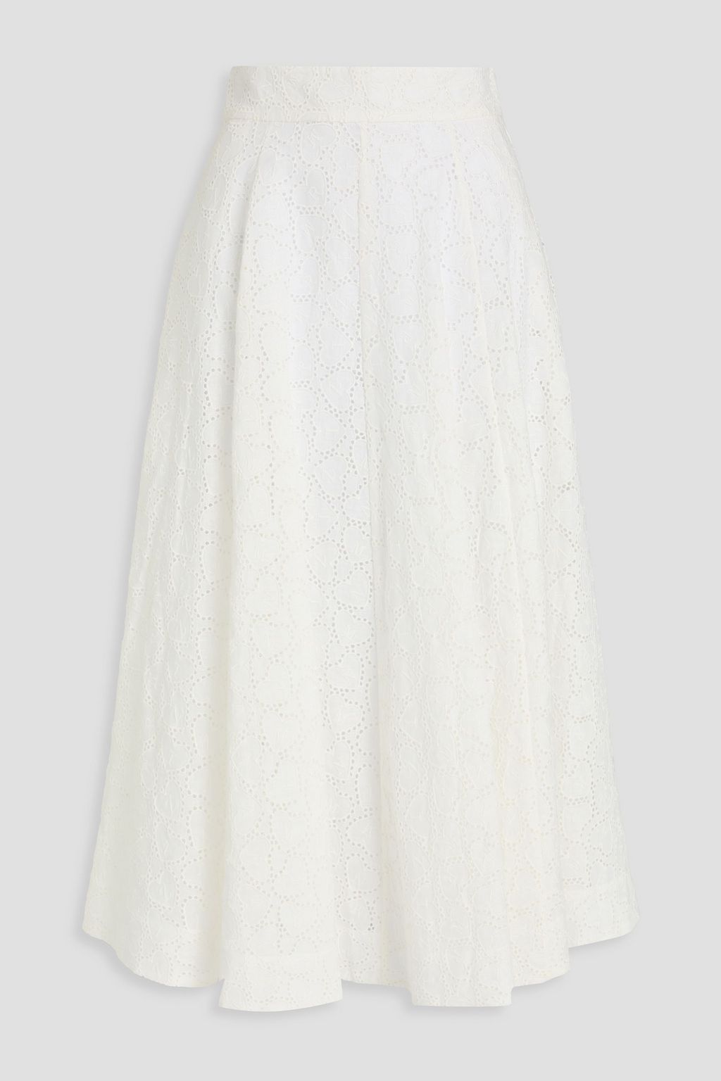 ZIMMERMANN تنورة متوسطة الطول من الكتّان بتطريز إنجليزي