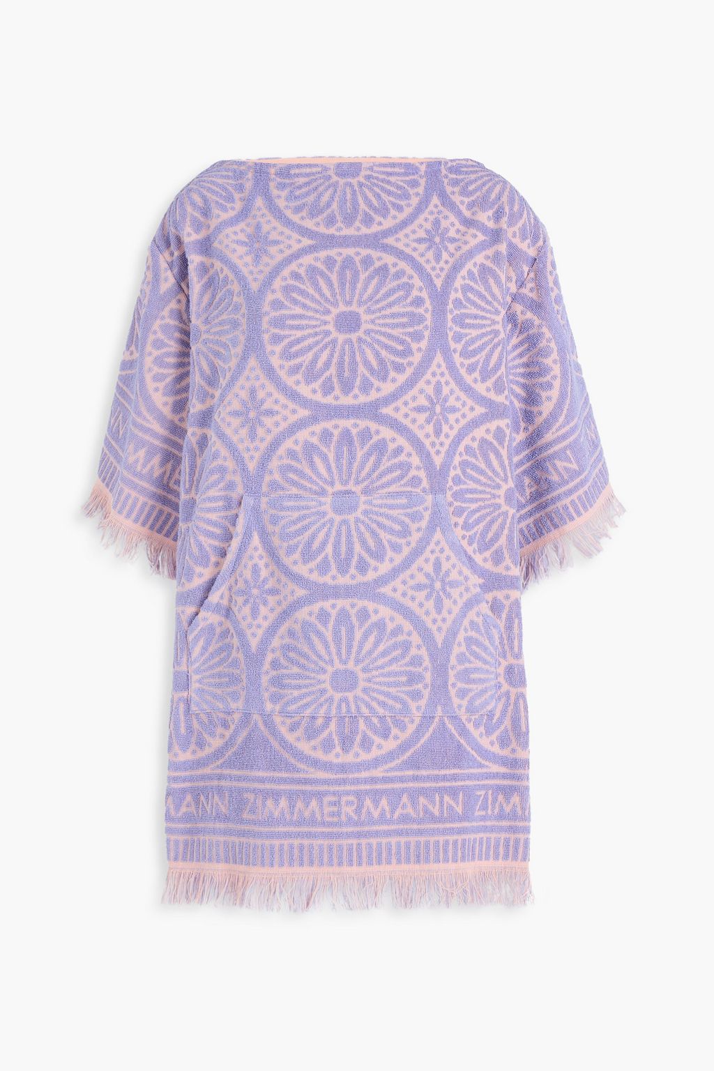 ZIMMERMANN فستان قصير من قطن تيري بطبعات وبشرّابات