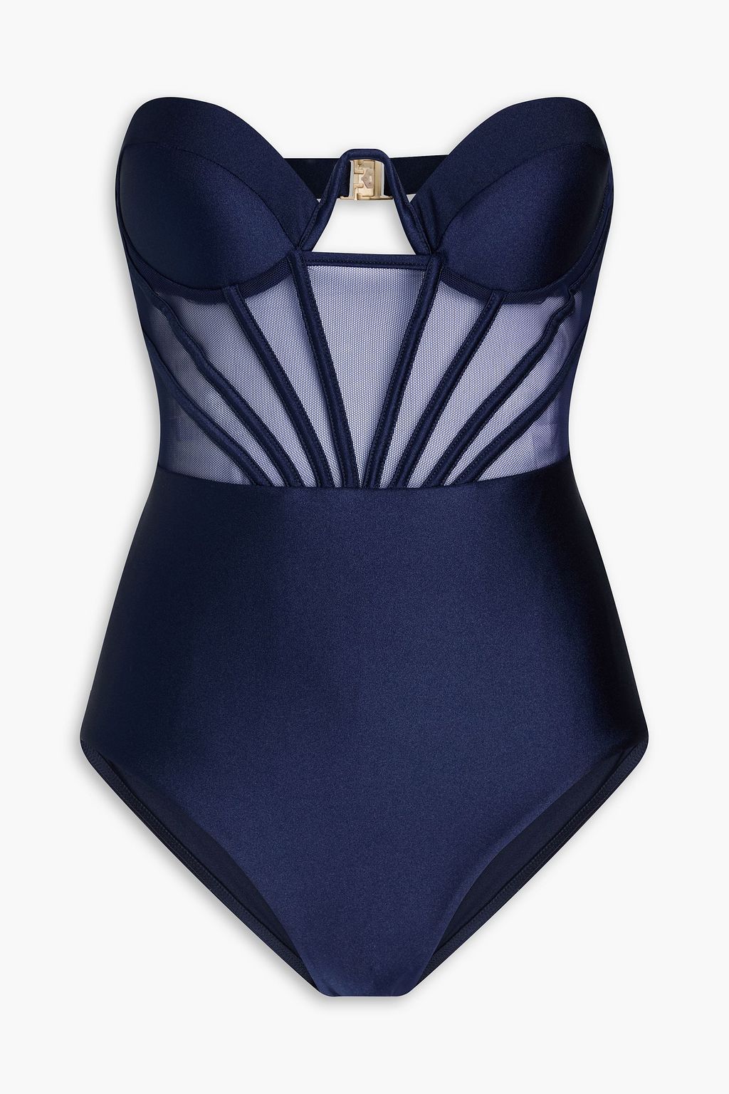 ZIMMERMANN لباس سباحة بتصميم باندو مُدعّم بأسلاك سفلية بقِطع محاكة بجانب بعضها البعض من الشبك