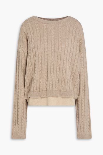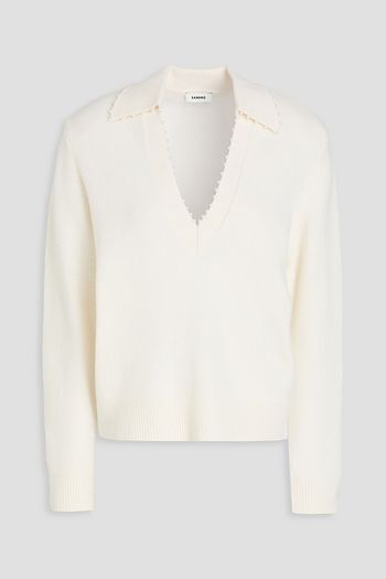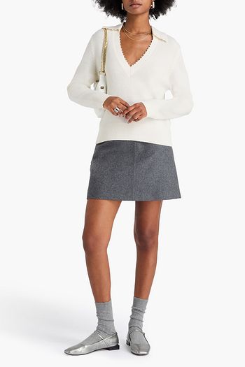 كنزة رياضية من مزيج الكشمير والصوف مزيّنة باللؤلؤ الاصطناعي ومضلّعة