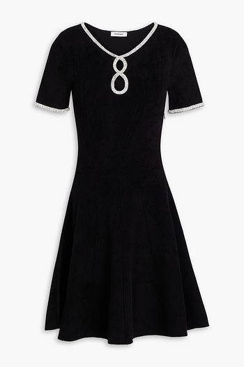 فستان قصير من التويد بحبكة بوكليه مزين بالكريستال