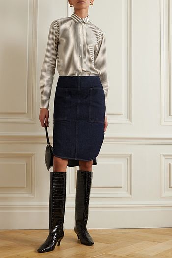 جينز بقصة تضيق تدريجيًا وبخصرٍ عالٍ مزين بكسرات مطلي