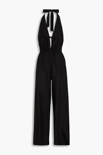 جمبسوت "كلاوديا" من حرير ساتان مجعّد مزين بطبعات
