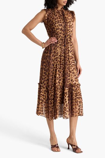 فستان متوسط الطول من الشيفون بنمط فيل كوبيه بلون ميتاليك بطبعة الأزهار بكشاكش