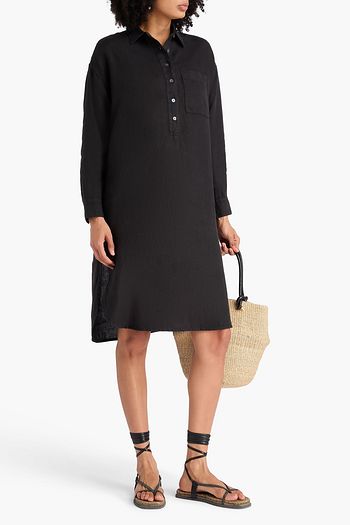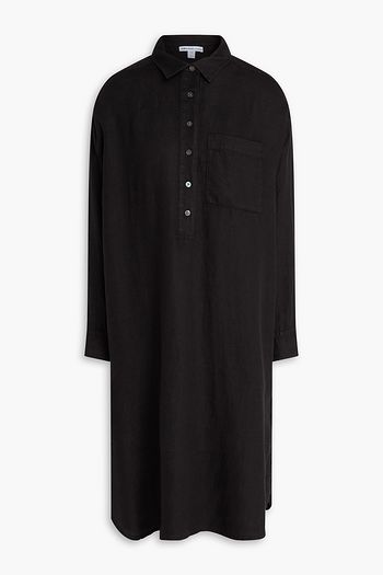 فستان متوسط الطول على شكل قميص من التويل المصنوع من مزيج الكتان
