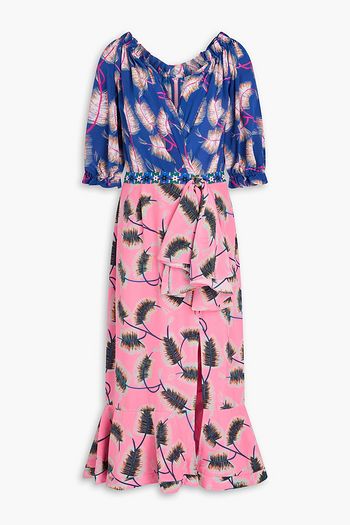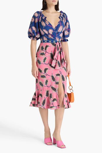 فستان متوسط الطول مصنوع من حرير شيفون بنمط ملتف ومزين بطبعة الأزهار