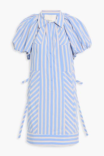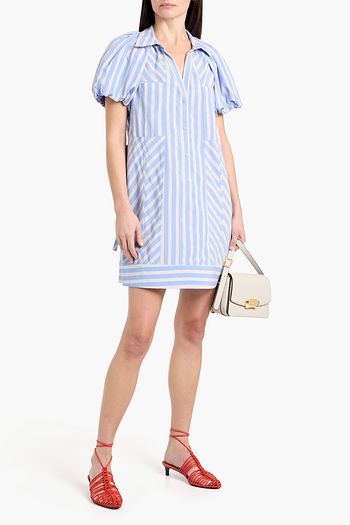 فستان متوسط الطول على شكل قميص بطبقات من قماش البوبلين القطني المخطط