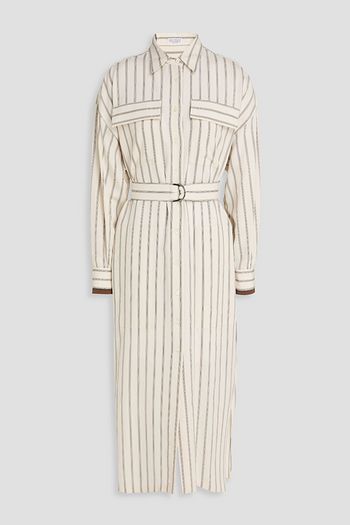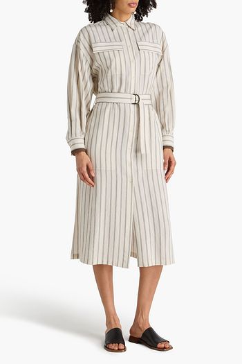 فستان بأسلوب القميص متوسط الطول من التويل المصنوع من مزيج القطن بحزام