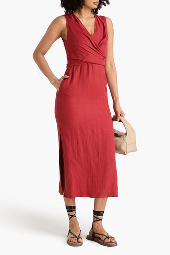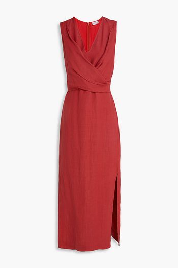 فستان متوسط الطول بتصميم ملفوف من قماش كريب دي شين الحريري