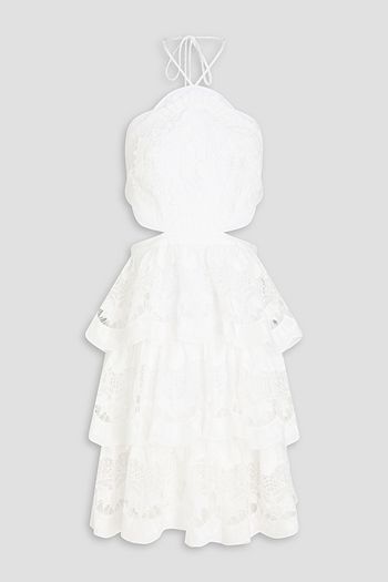 فستان "نيكولاي" من نسيج محبوك بنمط مضلع مزين بفتحات