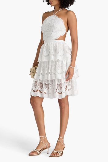 فستان قصير "بيسكوتو" من قطن بوبلين بطبقات متدرجة مزين بطبعات