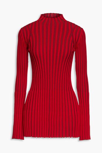 كنزة رياضية "جارين" بياقة عالية من النسيج المحبوك بنمط مضلّع المغزول بلونين