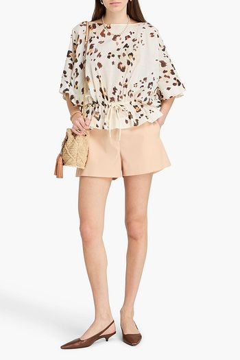 بلوزة Signe من مزيج قطن الفوال بطبعات وكشاكش