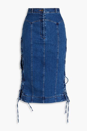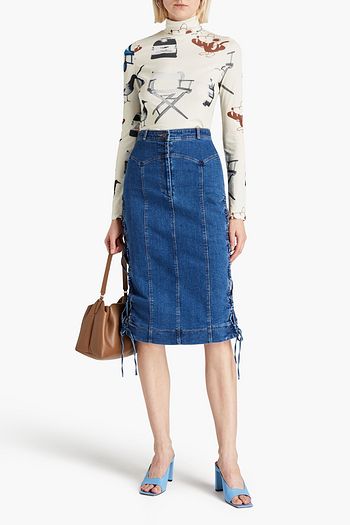 بنطلون جينز قصير بقصة أرجل مستقيمة وخصر مرتفع